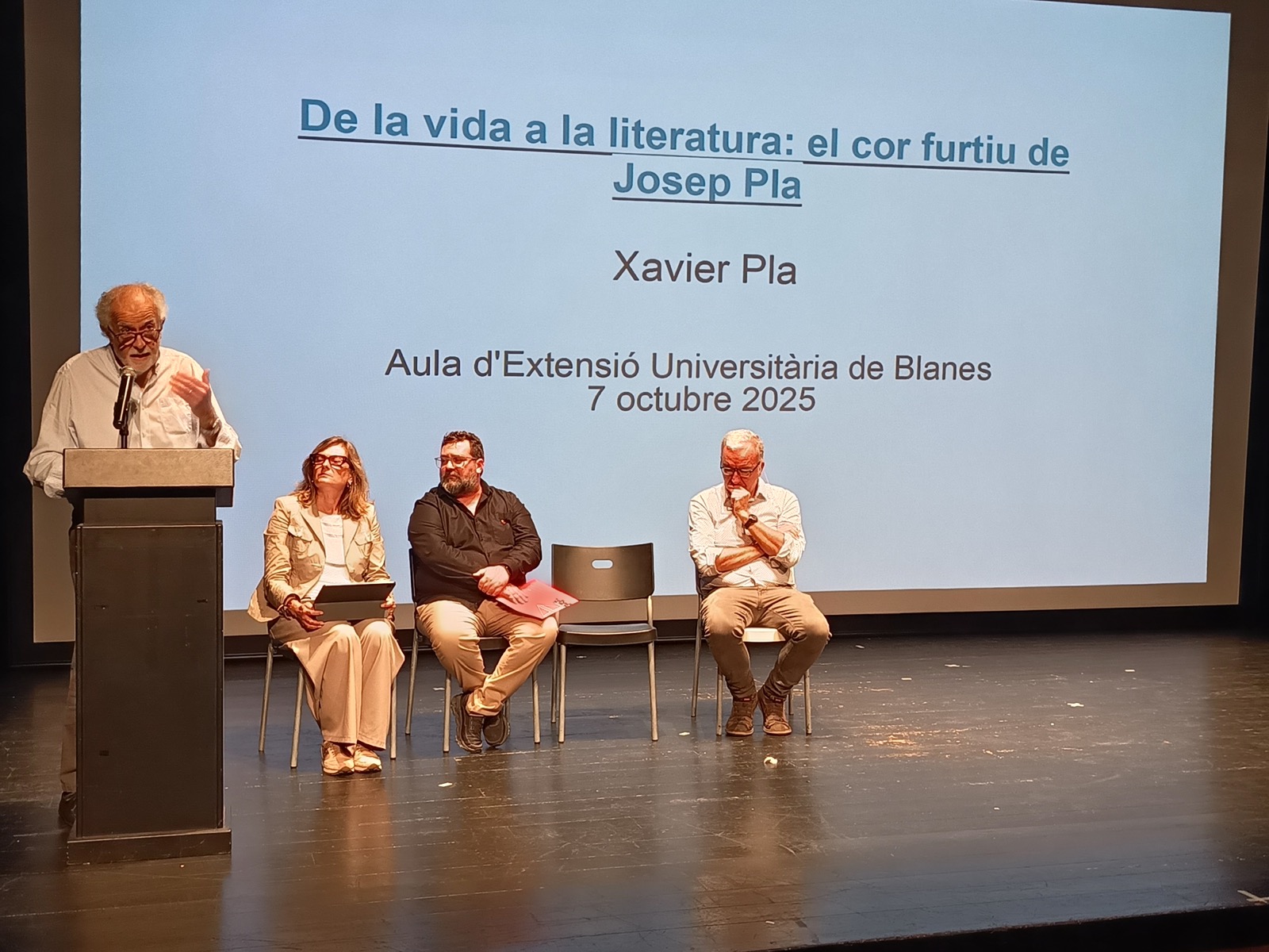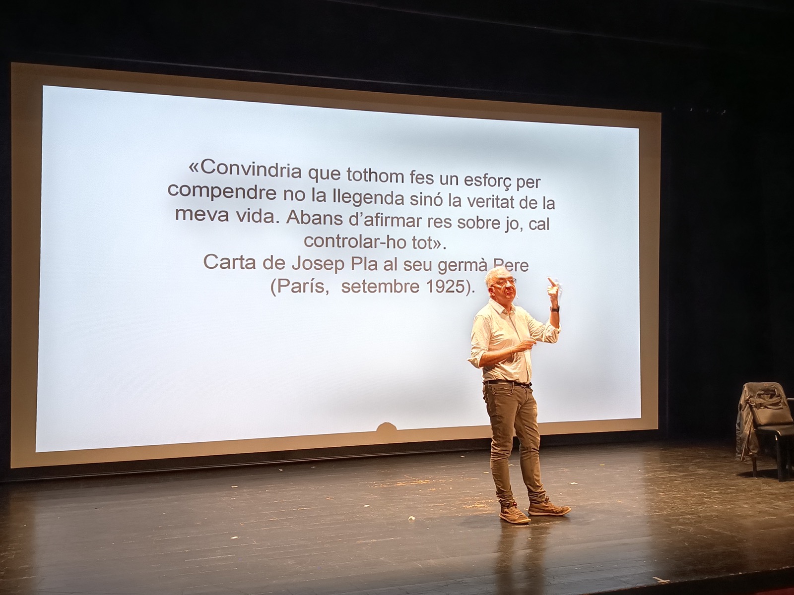 Tot seguit, el doctor Xavier Pla, professor de literatura catalana a la Universitat de Girona i un dels principals referents en l’estudi de la biografia i l’obra de Josep Pla, ens va oferir una conferència sumament documentada sobre la vida i la trajectòria d’una de les figures centrals de la cultura catalana del segle XX.